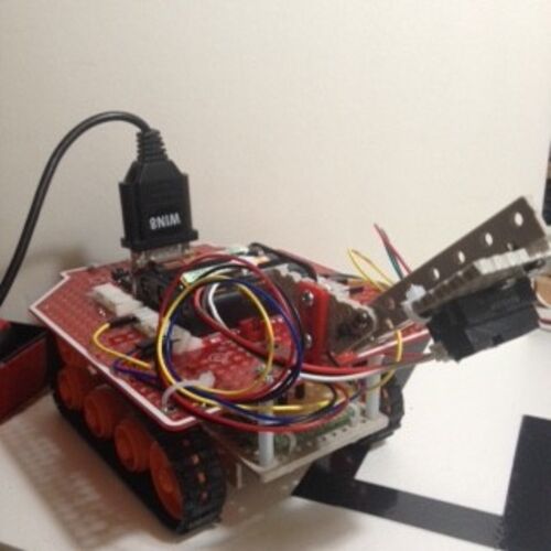 ラインセンサを下部シャーシの上側に載せることでホイールとシャフトの配置に余裕ができ、車体もコンパクトになった。 良かれと思った配置だが、ラインセンサが床から離れた分(5mm->25mm)、左右に並んだLEDの影響を受けやすくなってしまい、ラインの検出が難…