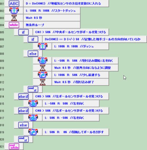 ロボット作成時にプログラムは三要素 S・C・Aを分けるとよいと思う。 S(Sensor) センサ:感じて知らせる! C(Computer) コンピュータ:判断して命令! A(Actuator) アクチュエータ:目的をはたす! 分けることで、センサの構成変更や足回りの変更(オムニだと4…