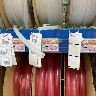 ホームセンターで入手が容易で安価な燃料用ホースを利用する。近所のホームセンターでは複数の穴径・外径のホースが10cm単位の量り売りをしており、30cmで100円しない値段で購入できる。利用するホースの穴径・外径に合わせて設計する。