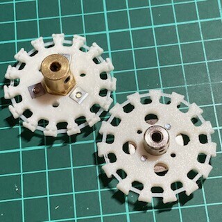 - メインホイールをギヤモーターシャフトに固定するためのハブ。ギヤモーターシャフト形状によっては不要。
