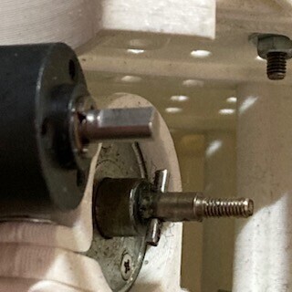 廻り止めのピンを通す穴の空いたシャフトへの固定には不要だが、Dカットシャフトに固定する際には金属製のハブを利用する。 写真手前がDカットシャフト。